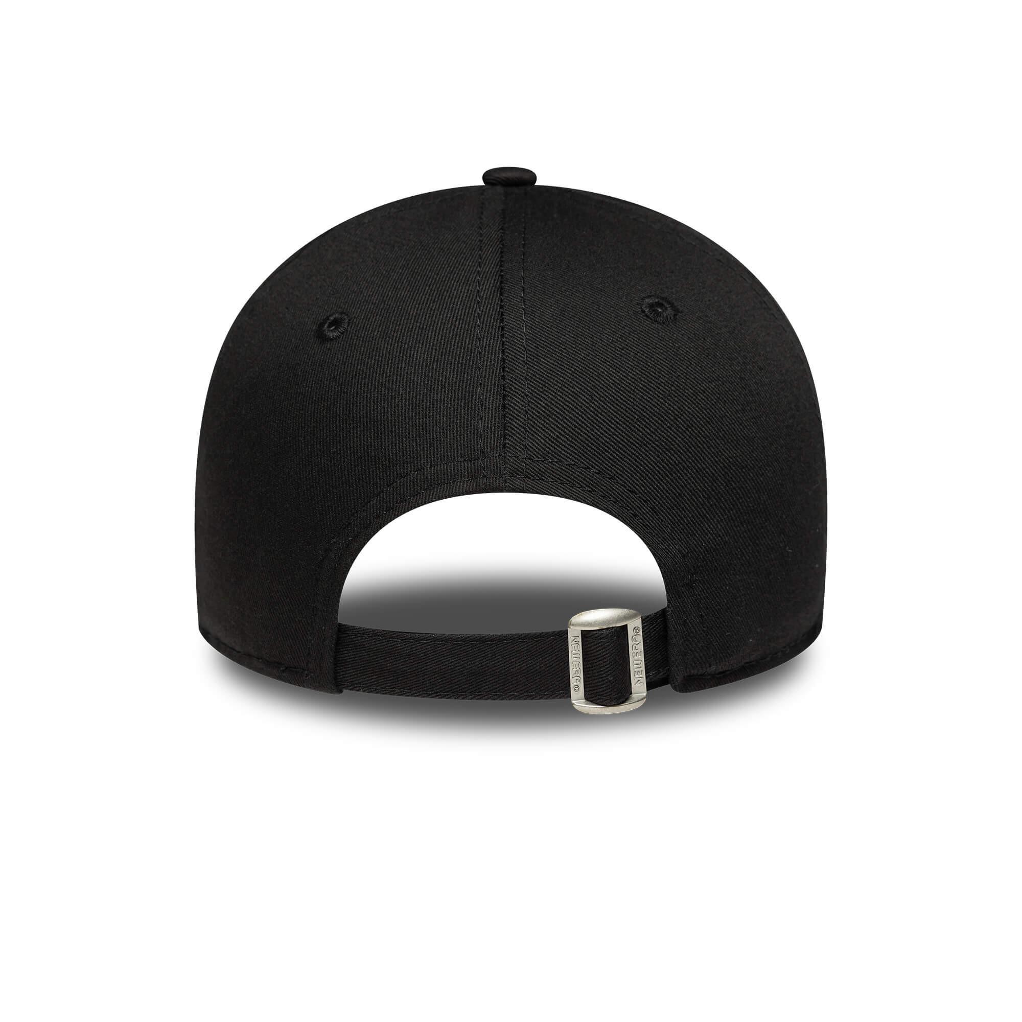 · Dámska šiltovka New Era 9FORTY MLB League Essential Black s logom LA Dodgers na prednej strane a vyšívanou vlajkou New Era na ľavej strane.
